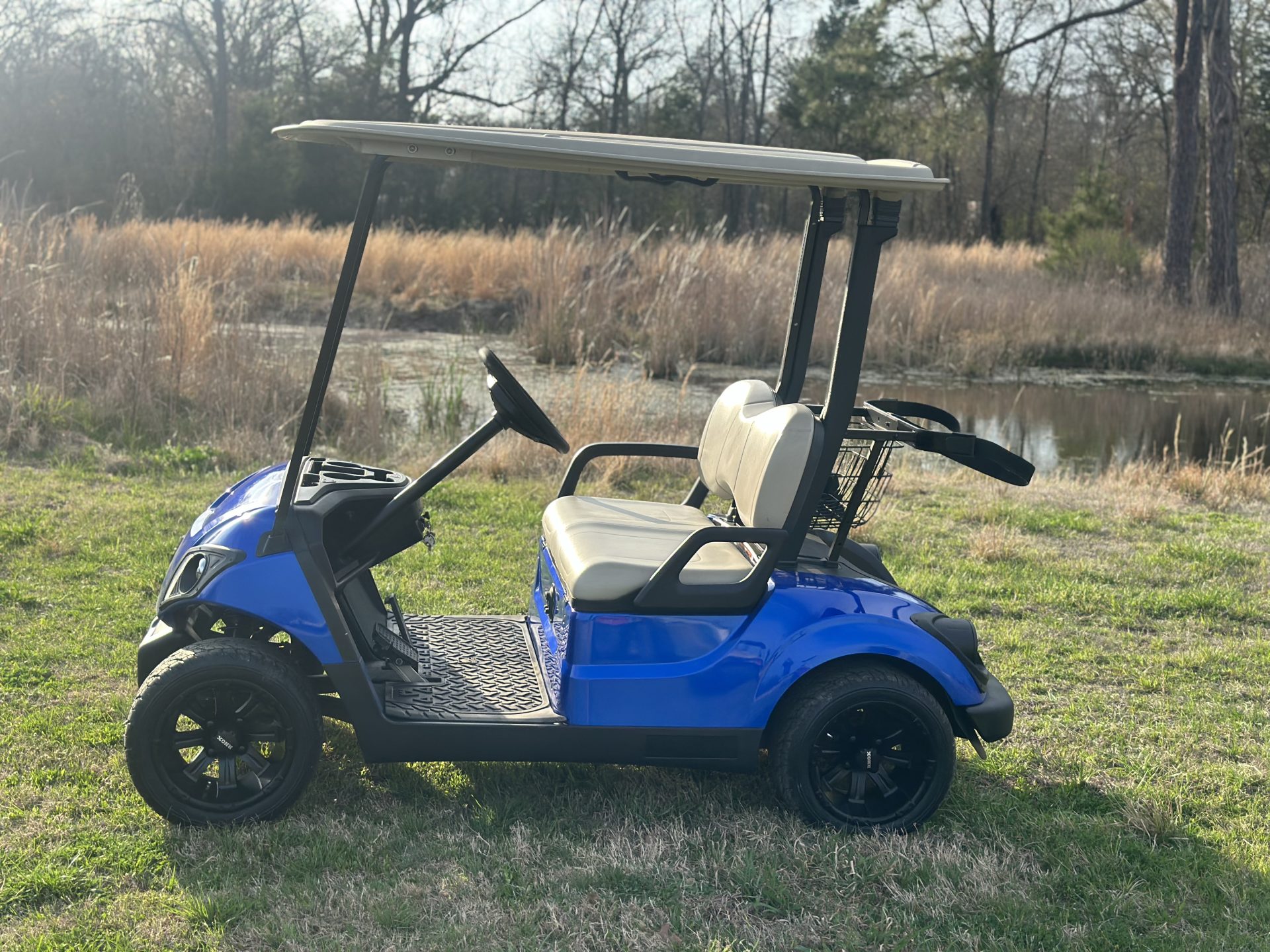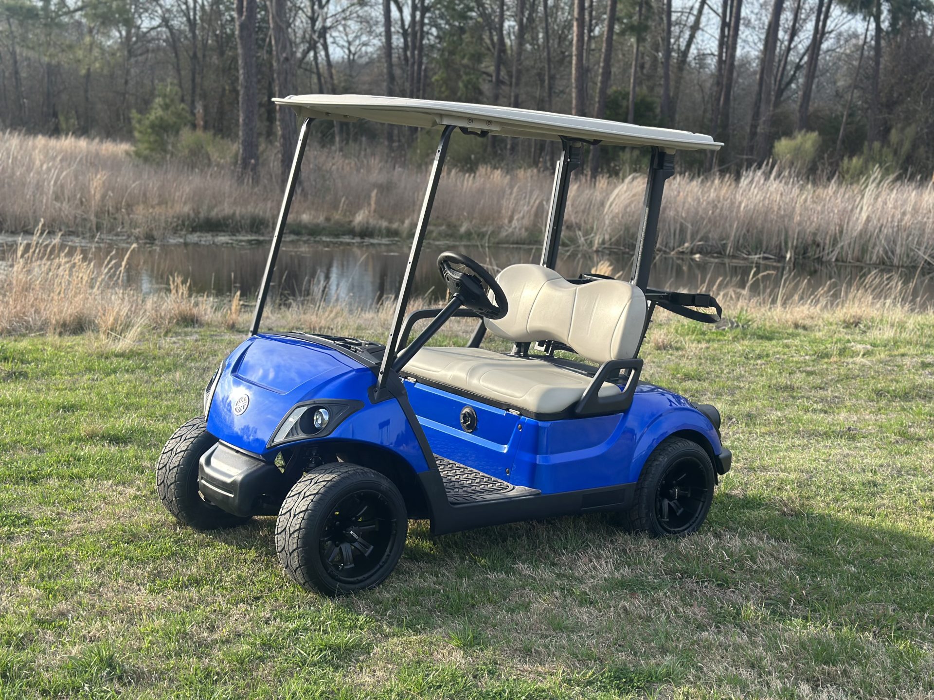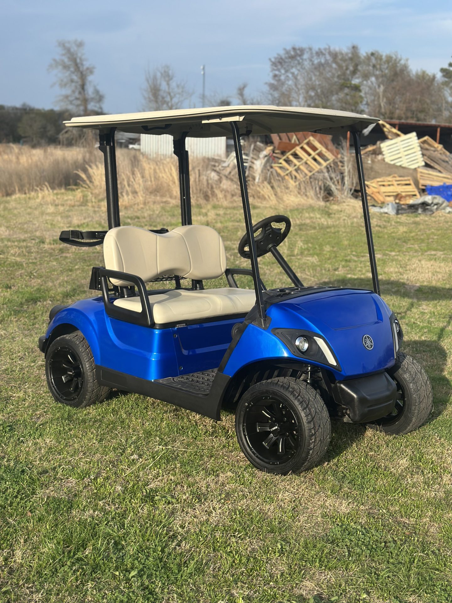 Complete refurbished, new body new paint, new seats, new tires, new wheels, new batteries, new headlight kit ready for spring time Golf available in three colors red blue matte black